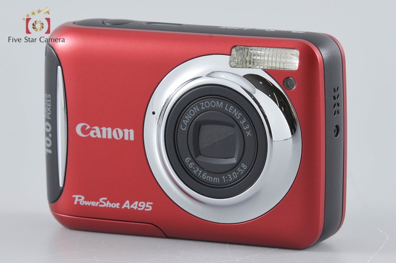 【中古】Canon キヤノン PowerShot A495 レッド コンパクトデジタルカメラ 元箱付き