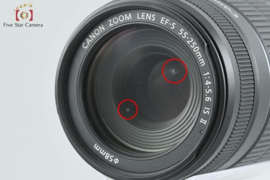 | 光学 | Bレンズコンディション 18-55mmレンズ 内部は強い光を当てるとわずかなほこりが確認できます。 症状の進行が視認できるカビが、内部に数点ございます。 肉眼で視認できる傷が、前玉に数点ございます。 55-250mmレンズ 内部は強い光を当てるとわずかなほこりが確認できます。 症状の進行が視認できるカビが、内部に数点ございます。 逆光時を除きほとんど影響が出ない程度の薄いクモリが、内部の外周部にございます。 ファインダーコンディション 内部は強い光を当てるとわずかなほこりが確認できます。 光を当てると薄く確認できる程度のカビが、フォーカシングスクリーンに数点ございます。 逆光時を除きほとんど影響が出ない程度の薄いクモリが、フォーカシングスクリーンの一部にございます。 ファインダーからピントを合わせる際には視界に入らないため、支障はございません。 |