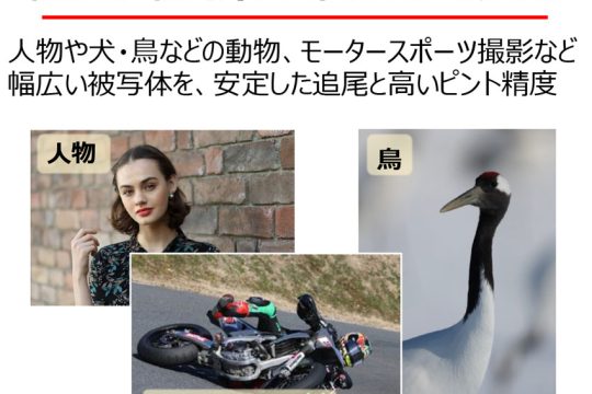 ■高性能な被写体検出とトラッキング性能で広範囲に被写体を捉え続けるAFシステム。さらにメカシャッター最高約15コマ/秒のEOS Rシリーズ最速となる高速連続撮影などこれまでにないアグレッシブな動体撮影を可能に