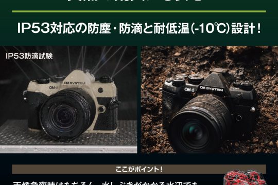 ■各部にシーリングを施し、「OM-1 Mark II」と同等の防塵・防滴保護等級 IP53、-10℃の耐低温という高い耐候性能を備えます