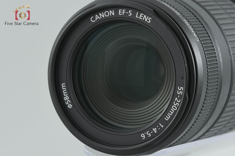 | 外観 | B外装に使用感、磨耗による若干のテカリ、三脚座の跡がございます。 ホットシューにサビ跡、液晶内部にカビが見られ、55-250mmレンズに打痕がございます。 |