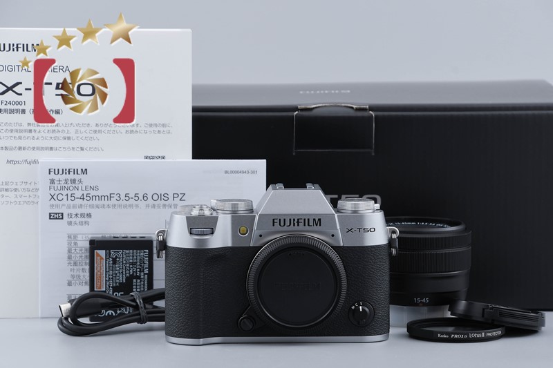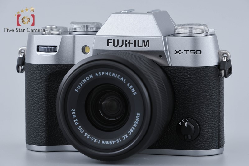 【中古】FUJIFILM 富士フイルム X-T50 XC 15-45mm レンズキット シルバー シャッター回数僅少 元箱付き