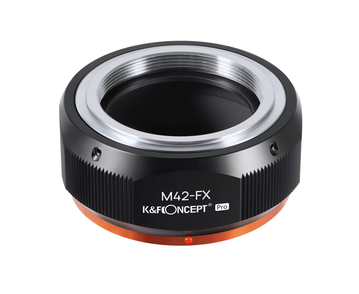 M42マウントレンズを富士フイルムXマウントのカメラボディに装着するためのマウント変換アダプターです。カメラマウント部にK&F Conceptのコーポレートカラーのオレンジを配した、新しいデザイン(Pシリーズ)となっています。