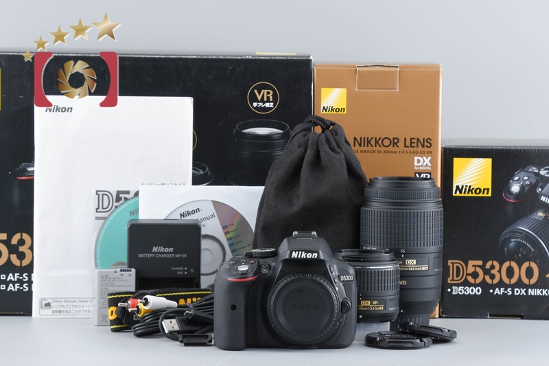【中古】Nikon ニコン D5300 ダブルズームキット ブラック シャッター回数僅少 元箱付き