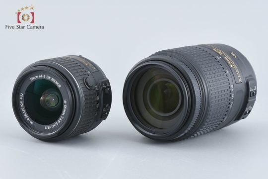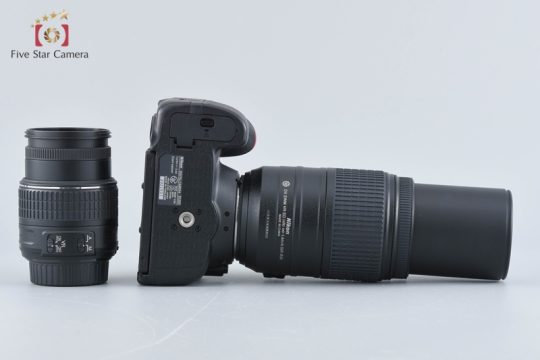 | 付属品 | レンズ x2・前後キャップ x2・ケース(55-300mmレンズ用)・ボディキャップ・ストラップ・バッテリー・充電器・USBケーブル・AVケーブル・DK-5 アイピースキャップ・CD-ROM・取扱説明書(書き込み・汚れ有り)・内箱(劣化有り)・元箱 |